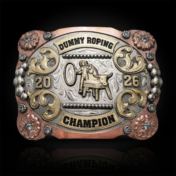 Lettering, stone colors, and center figure are customizable, making the Brady Belt Buckle a great choice for championships, awards, and custom western pieces.