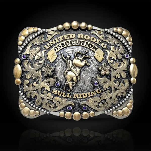 The Carson City Belt Buckle features a German Silver base with a matted, antiqued finish that enhances the detailed scrollwork throughout the design. Flowing Jeweler’s Bronze scrollwork surrounds the center, creating bold contrast and depth. Raised Jeweler’s Bronze lettering and a dimensional center figure stand out prominently and can be fully customized to match your event, association, or personal style.