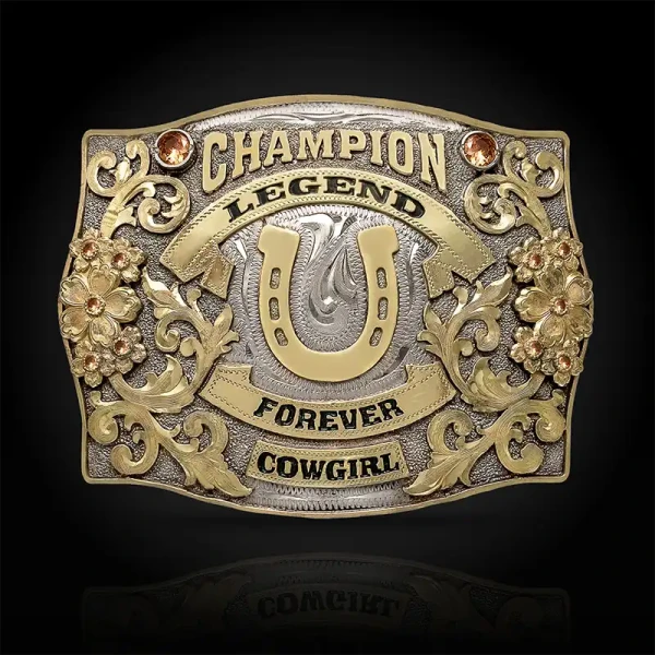 Finished with a smooth, polished edge, this buckle offers a balanced and elegant look. Lettering, any of our Stock Figures, your own Custom Logo or Ranch Brand and Stone Colors can all be customized to fit your event, award, association, or personal style—making it a versatile option for any special occasion.