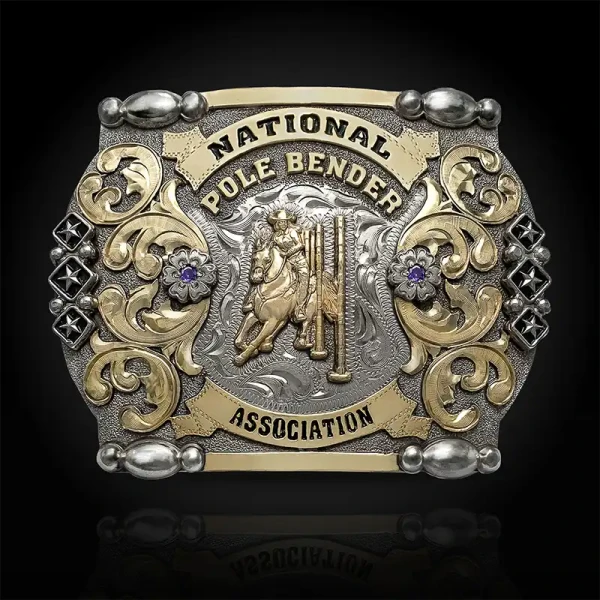 The lettering, figure, stone, and enamel color details are fully customizable, making the Eastvale Belt Buckle a versatile option for awards, associations, events, or any special occasion.