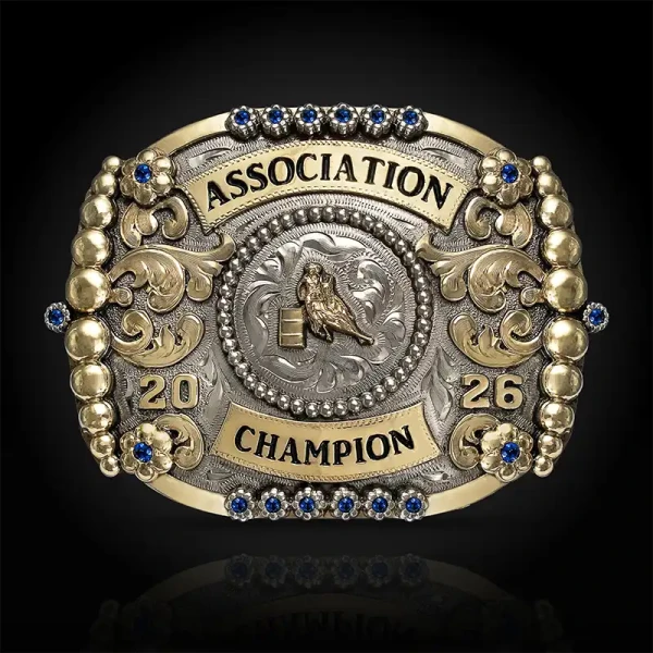 The lettering, figure, and stone details are fully customizable, making this buckle a versatile option for awards, associations, events, or any special occasion.